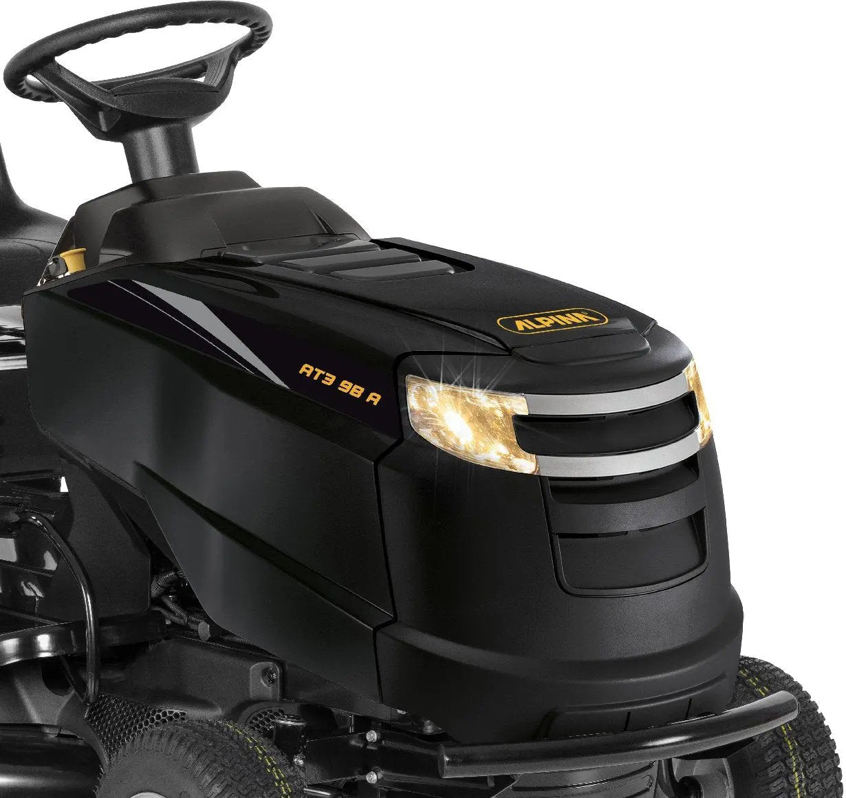Auch der Komfort kommt beim Alpina AT3 98 A nicht zu kurz. Das ergonomische Lenkrad sorgt für ein sehr gutes Fahrerlebnis. Der Alpina Smart-Sitz mit Unterstützung für den unteren Rückenbereich ermöglicht stundenlanges, ermüdungsfreies Mähen.