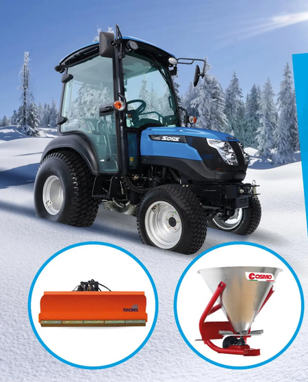 Der Solis 26 HST mit Winterpaket ist ein kompakter und vielseitiger Kleintraktor mit hydrostatischem Antrieb, der speziell für den Winterdienst ausgestattet ist und sich durch seine robuste Bauweise, komfortable Kabine sowie zahlreiche wintertaugliche Zusatzgeräte auszeichnet.